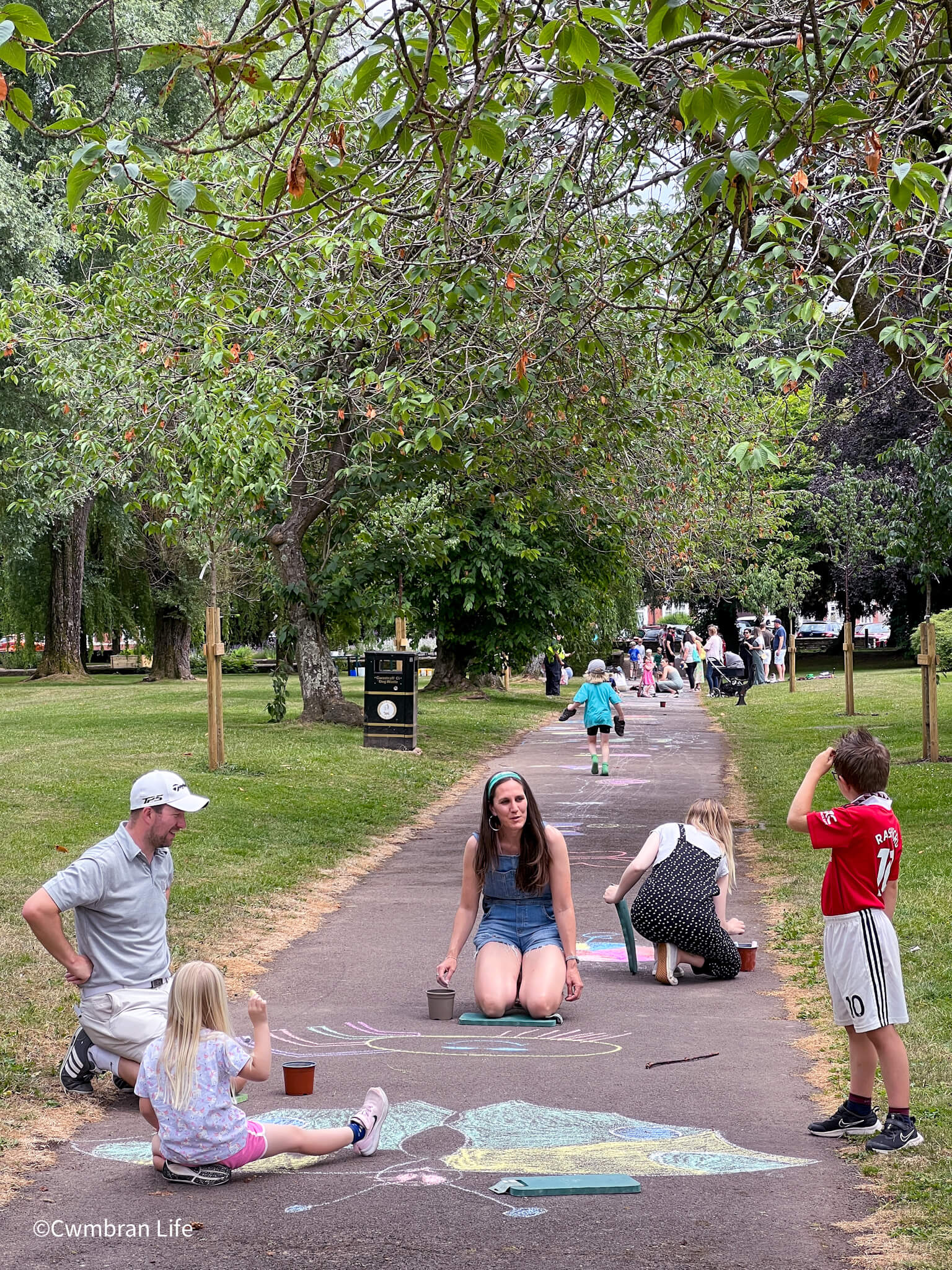They took part in an Art in the Park event, organised by Llarcs (Llantarnam Residents Conservation Society). Artist Tom Maloney encouraged children to draw bugs and insects in chalk along one of the long paths through the park. This is a quick video of the path after the first session, before the second group made it even longer in the afternoon. It’s a stunning, colourful stretch of creative art made by children.
