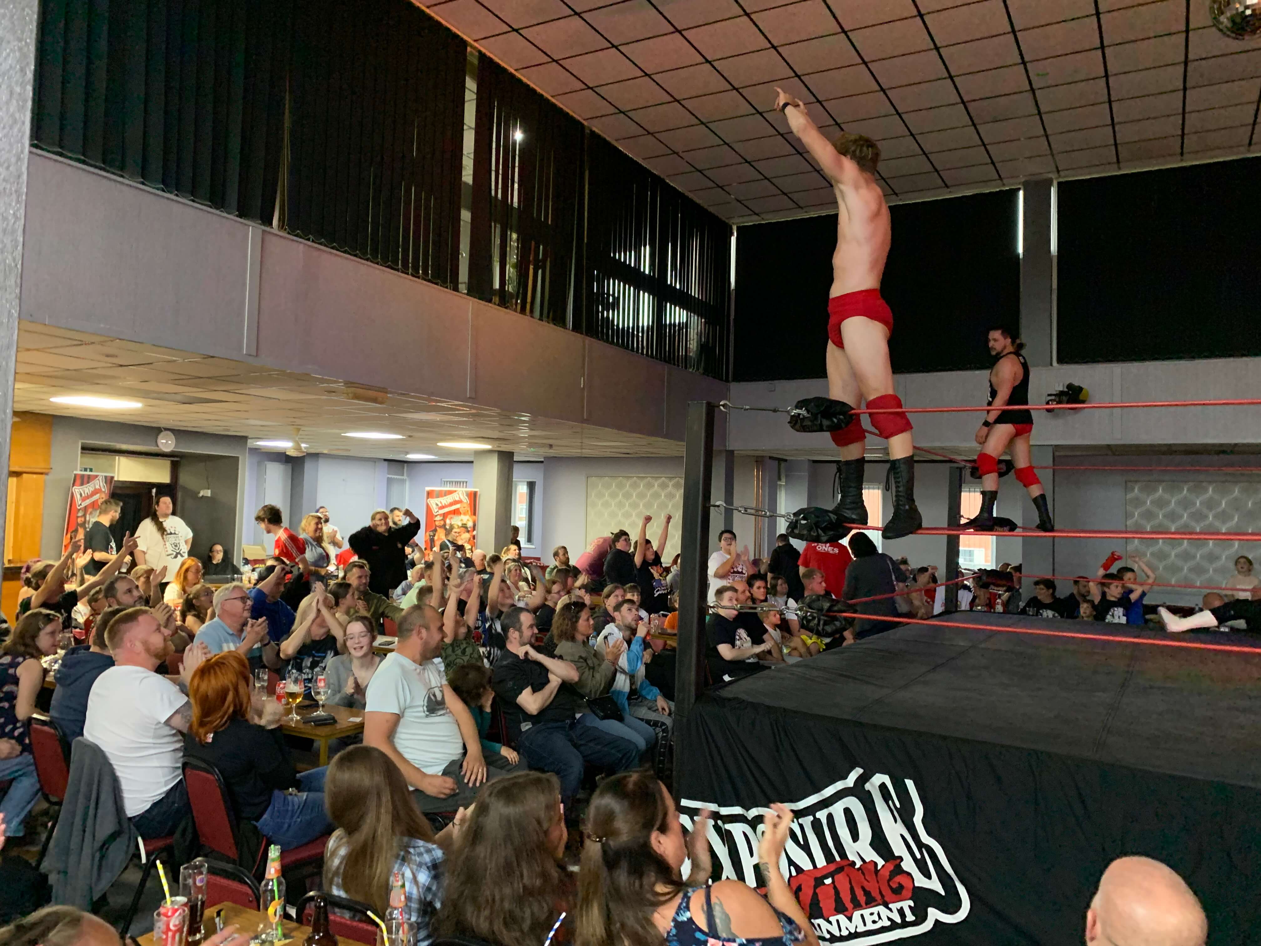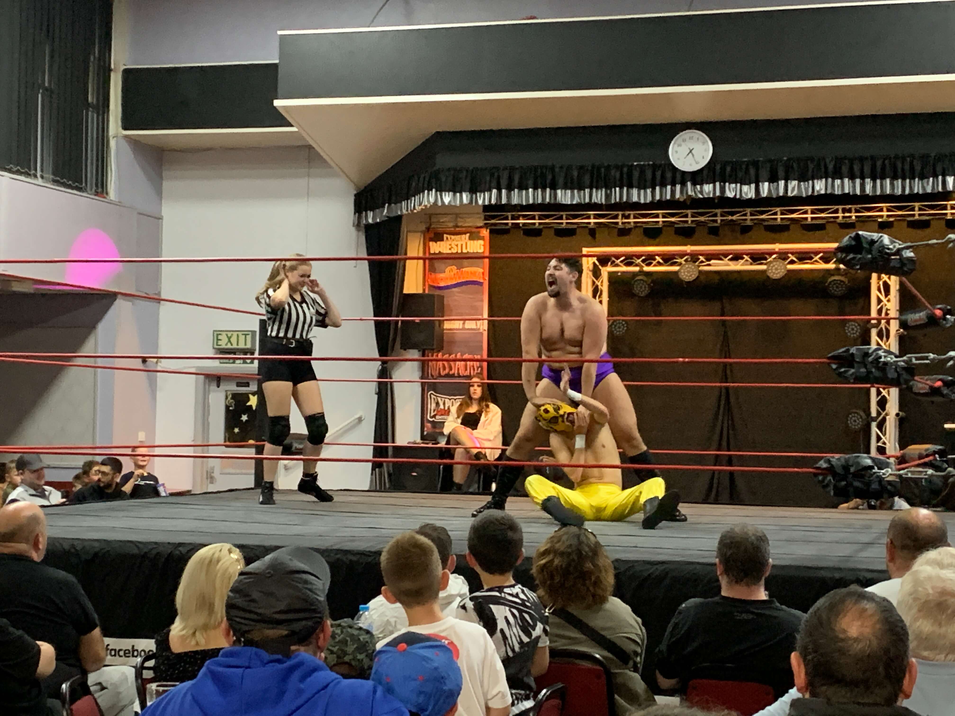 Entrance to this event was from £7 and for that got you nearly two hours of entertainment. And as for the view, well I popped to the bar for a can of coke and suddenly found myself in the middle ‘a brawl’ as two wrestlers left the ring to fight just a couple of yards from me. The crowd loved it and the pair made sure all the audience got a close-up look of the action as the scrap continued around the room and back into the ring. You could hear the ref, the wrestlers and fans around the room throughout the show. There is no such thing as a bad seat.