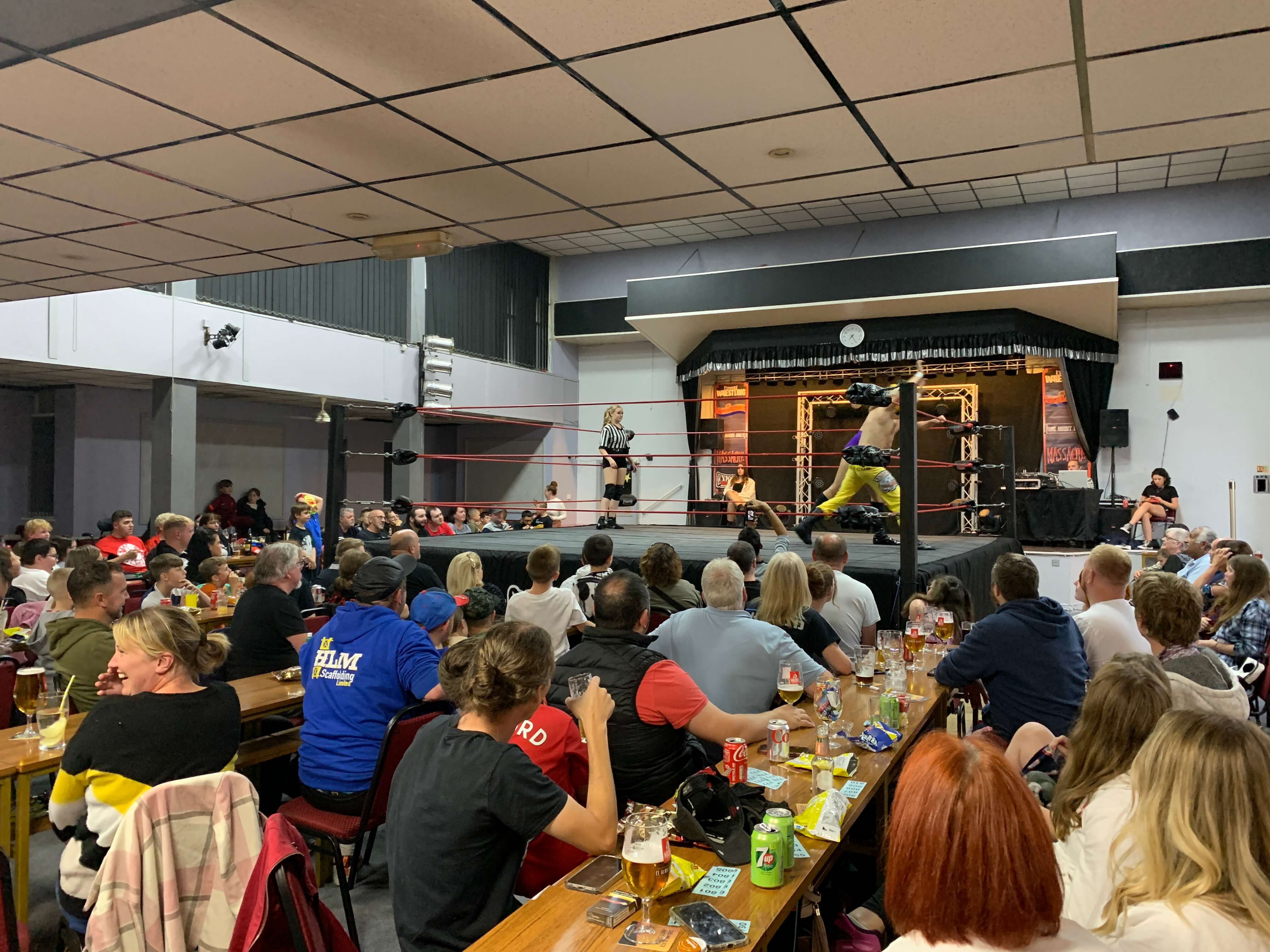 Entrance to this event was from £7 and for that got you nearly two hours of entertainment. And as for the view, well I popped to the bar for a can of coke and suddenly found myself in the middle ‘a brawl’ as two wrestlers left the ring to fight just a couple of yards from me. The crowd loved it and the pair made sure all the audience got a close-up look of the action as the scrap continued around the room and back into the ring. You could hear the ref, the wrestlers and fans around the room throughout the show. There is no such thing as a bad seat.
