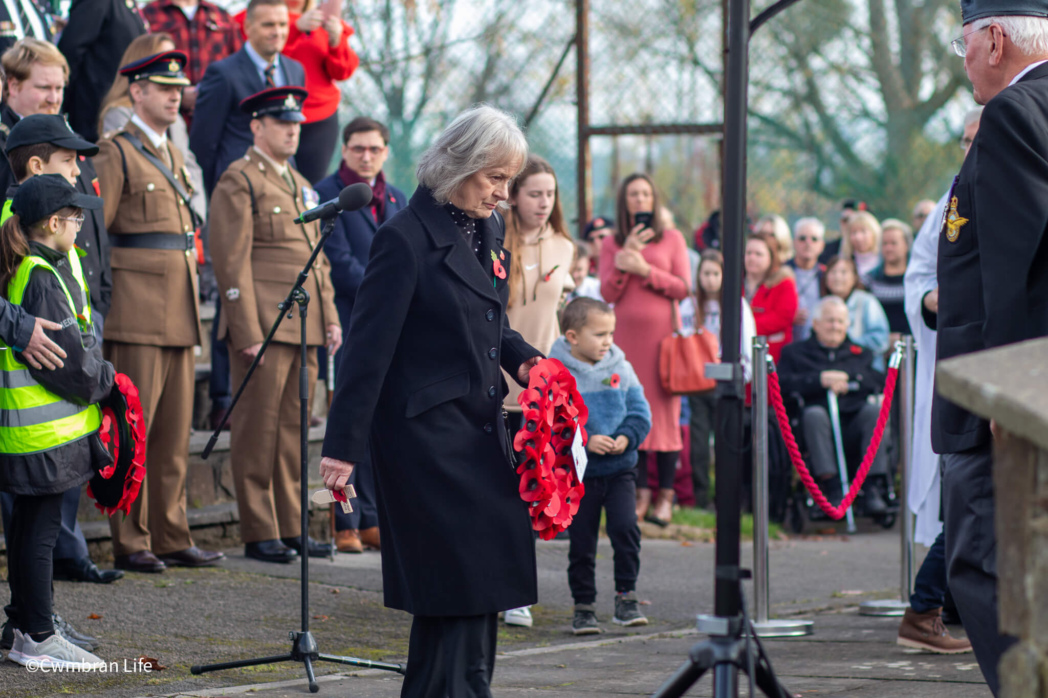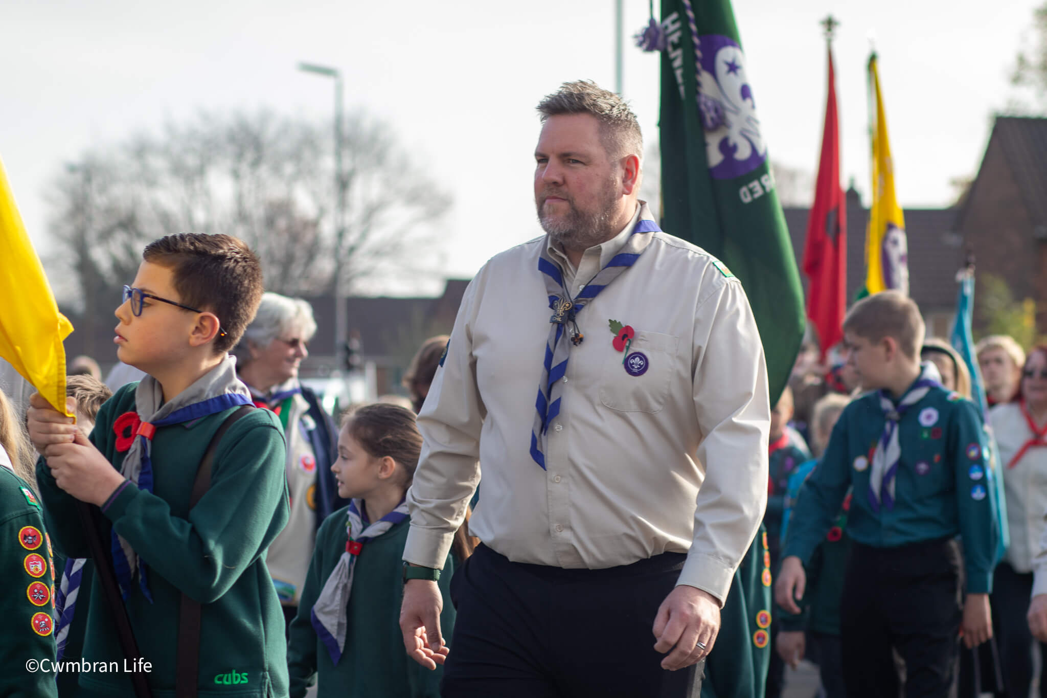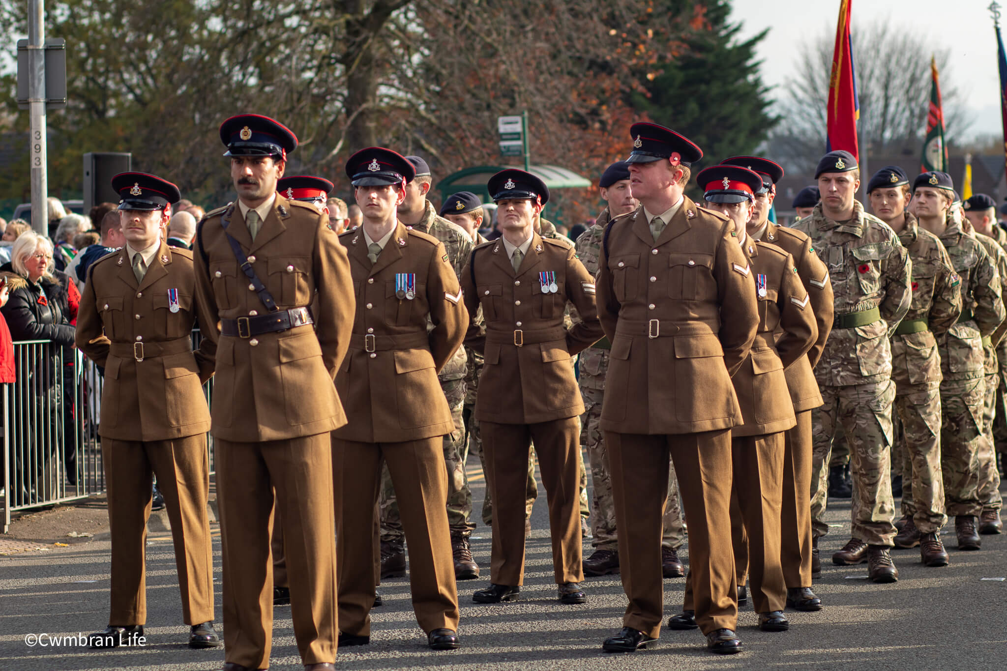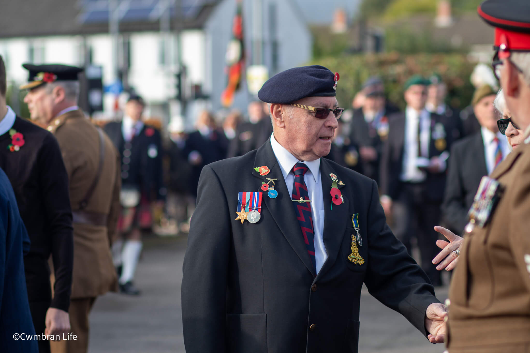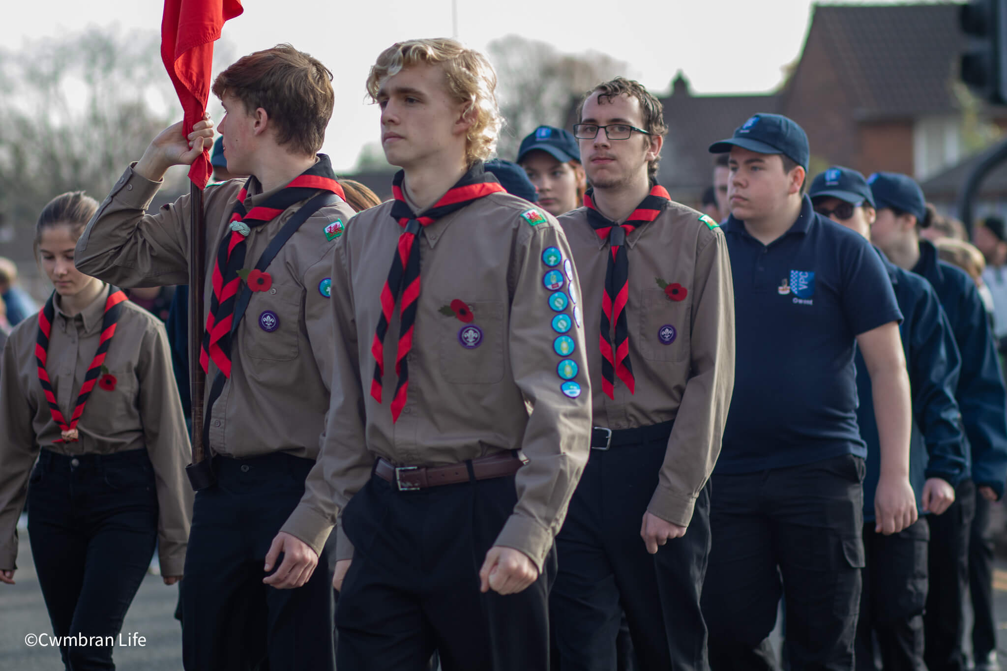 The group marched along Wesley Street to the sounds of a bagpiper and formed around the War Memorial in Cwmbran Park. Crowds stood inside the park and along Henllys Way to watch the service, prayers and laying of wreaths. The Last Post was played followed by a two-minute silence.