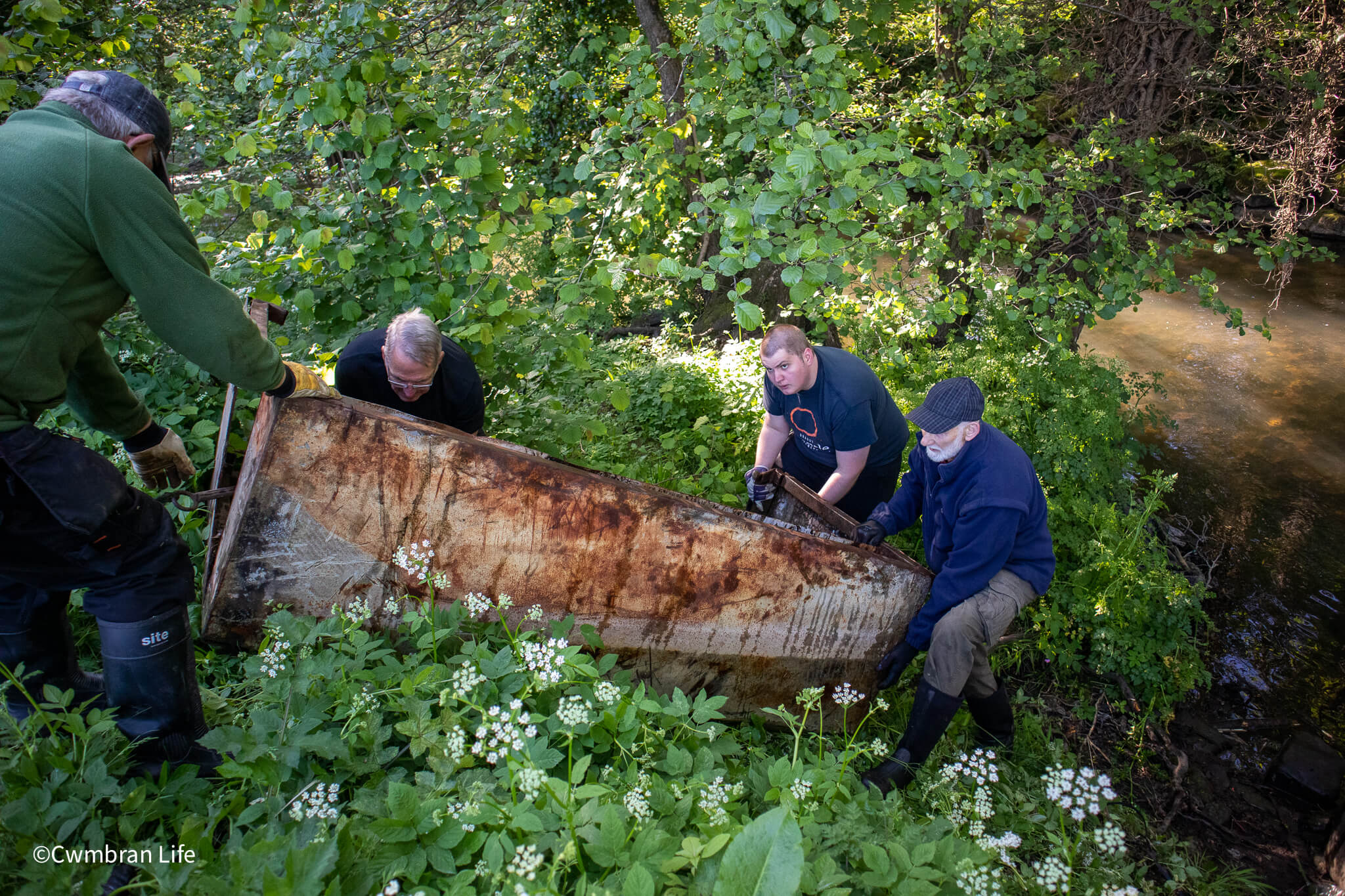 This group of volunteers spotted a large chunk of metal in the Afon Lwyd on the stretch by Cwmbran Boating Lake.